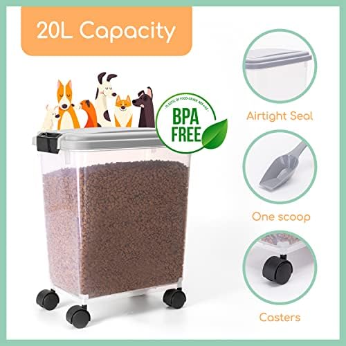 Nobleza Pet Food Storage, 20L/7.5KG Airtight Pet Food Storage Container with Wheels and Measuring Scoop